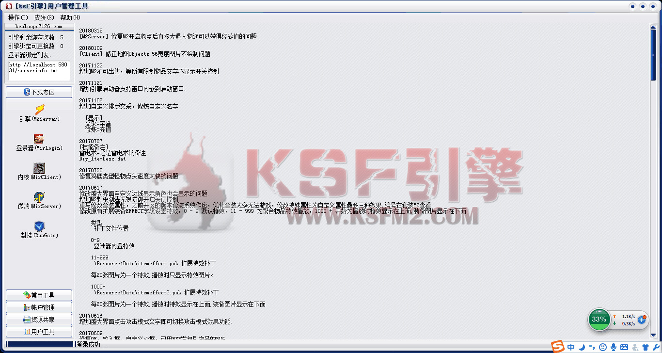 使用中有任何BUG或建议,请详细描述后发送至邮箱(KSF引擎更新概念图可在本站底部查看)